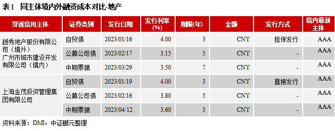 1、同主体境内外融资成本分析