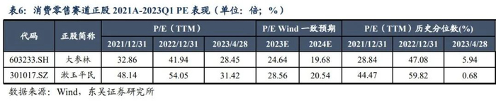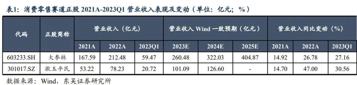 c)从未来驱动因素来看,一方面,医改政策利好叠加疫后居民医疗保健消费常态化,医药商业消费零售板块整体受益,板块β助力正股兑现业绩预期;另一方面,两家公司均积极实施门店扩张策略,且向线上零售业务、专业药房等新业态发展;此外,大参林2023年初募资用于计划进一步扩张门店、建设物流中心,漱玉平民2022年底募资用于建设物流项目,二者均把握赛道内竞争的关键布局,故中长期成长性均不弱。