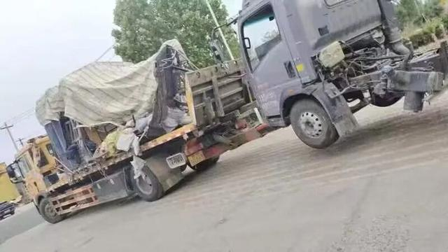 张先生受损的货车从事故停车场拖出来