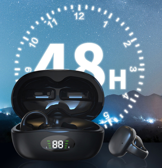 这款耳机采用耳夹式空气传导,不需要塞进耳朵里就能听音乐。