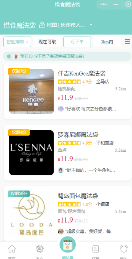 据了解,“惜食魔法袋”是我国第一个专注反食品浪费的小程序,于2021年正式上线,目前已入驻到北京、南京、上海、广州、深圳、杭州、长沙、成都等多个城市。