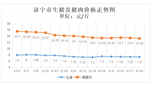 济宁:生猪及猪肉价格环比下降(5.18-5.24)