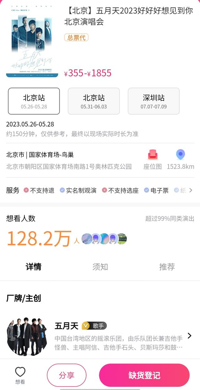 “舞台搭好了,就是没抢到票”“鸟巢那么大,却没有一张属于我的票”……今(25)日中午,五月天北京演唱会第二次开票,每场次不少于1000张。