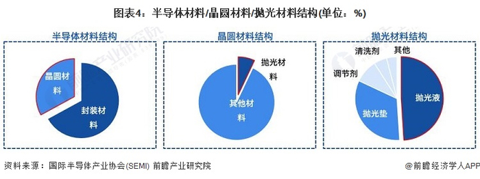 我国的半导体材料仍然集中在后端封装材料上,前端晶圆制造材料核心优势仍然不足。据SEMI数据,我国半导体材料中,封装材料占比约67%,晶圆制造材料占比约33%。在晶圆制造材料中,CMP抛光材料占比约为7%;在CMP抛光材料中,CMP抛光液占比约为49%。