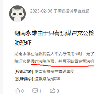一直以来,催收企业都处于舆论的风口浪尖,永雄集团也不例外。截至5月22日,永雄集团在黑猫投诉平台的投诉量达到153件,涉及个人信息买卖,骚扰他人,威胁恐吓,暴力催收等情况,甚至还有投诉永雄冒充公检法人员的情况。