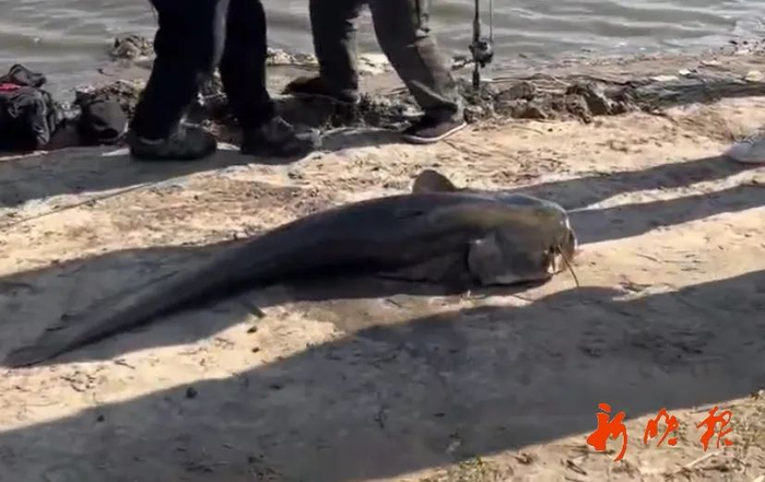 据了解,当时几名钓鱼爱好者正在呼兰河岸边钓鱼,突然一名中年男子吃力地收回鱼线,一条约1米多长、40斤左右的大鲶鱼浮出水面,一旁的钓鱼爱好者纷纷过来帮忙。