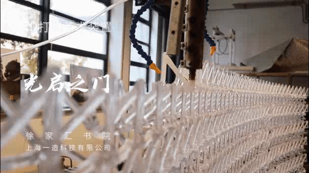 “光启之门”整体运用绿色环保的可降解塑料材质,并用3D打印建造技术呈现晶莹剔透的网格化牌楼新形象,呼应了用现代技术演绎传统工艺的主题。装置由2台大尺度建筑空间打印机器人耗时50天打印完成,打印路径长达17000米,打印消耗材料1.8吨,是当下最为先进打印技术的体现。同时,“光启之门”装置打印包括了4万多个打印单元,每个打印单元需要12个工序动作,整个打印动作编程超过50万行,全部程序通过自主研发的FUROBOT软件进行批量化编程完成,实现了高效且精准的打印。