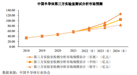 根据国家市场监督管理总局统计数据,截至2021年底,我国共有超过五万家检验检测机构,实现营业收入4090.22亿元。根据中国半导体协会数据,预计到2024年,我国半导体第三方检测分析市场规模将超过100亿元,2027年行业市场空间将有望达到180亿元-200亿元。