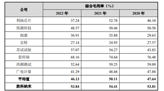 报告期内,行业综合毛利率均值分别为47.64%、50.11%、46.13%,而公司毛利率分别达到53.81%、54.41%和53.84%,在行业内处于较高水平。