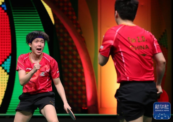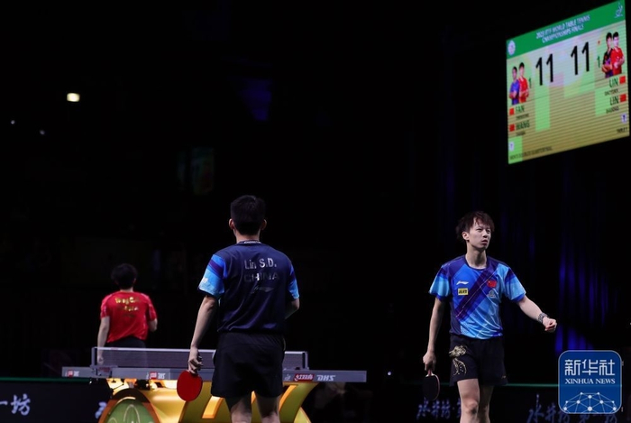 5月25日,在南非德班进行的2023年世界乒乓球锦标赛男子双打四分之一决赛中,中国组合樊振东/王楚钦以3比1战胜队友林高远/林诗栋,晋级四强。