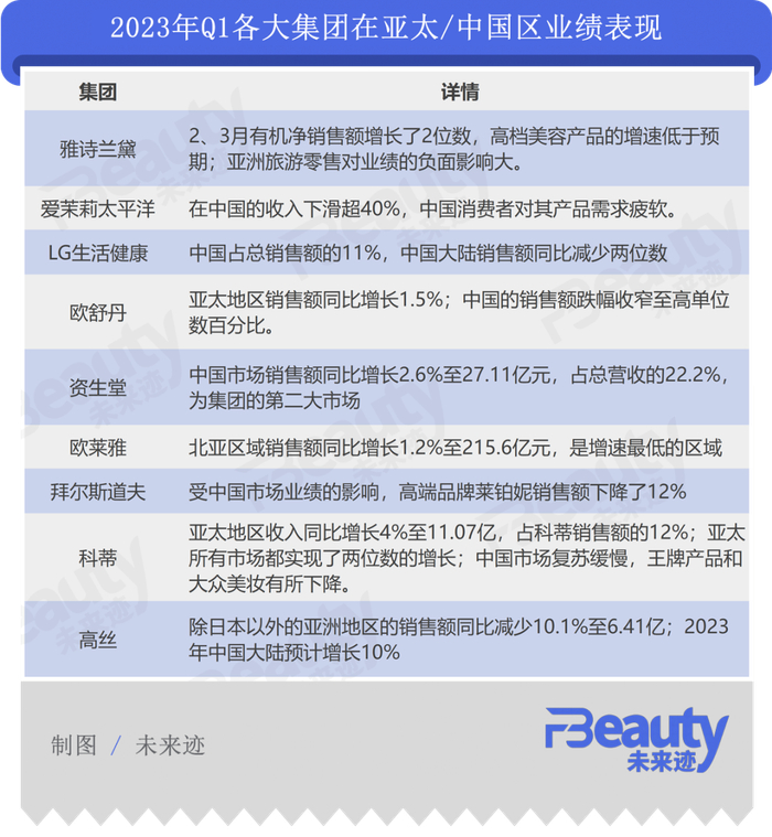 聚焦美妆业务,2023年前三个月几乎所有美妆巨头都逐渐找到了恢复元气的节奏。综合来看,国际美妆巨头的财报集中呈现以下两大特点:
