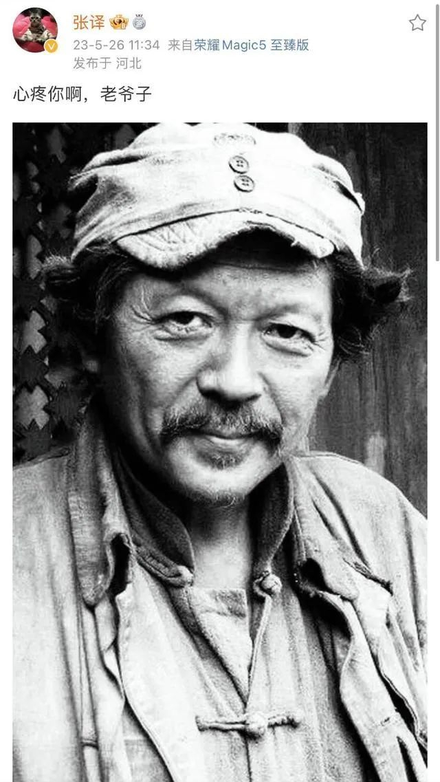 张译在悼念博文中说:“心疼你啊,老爷子”。