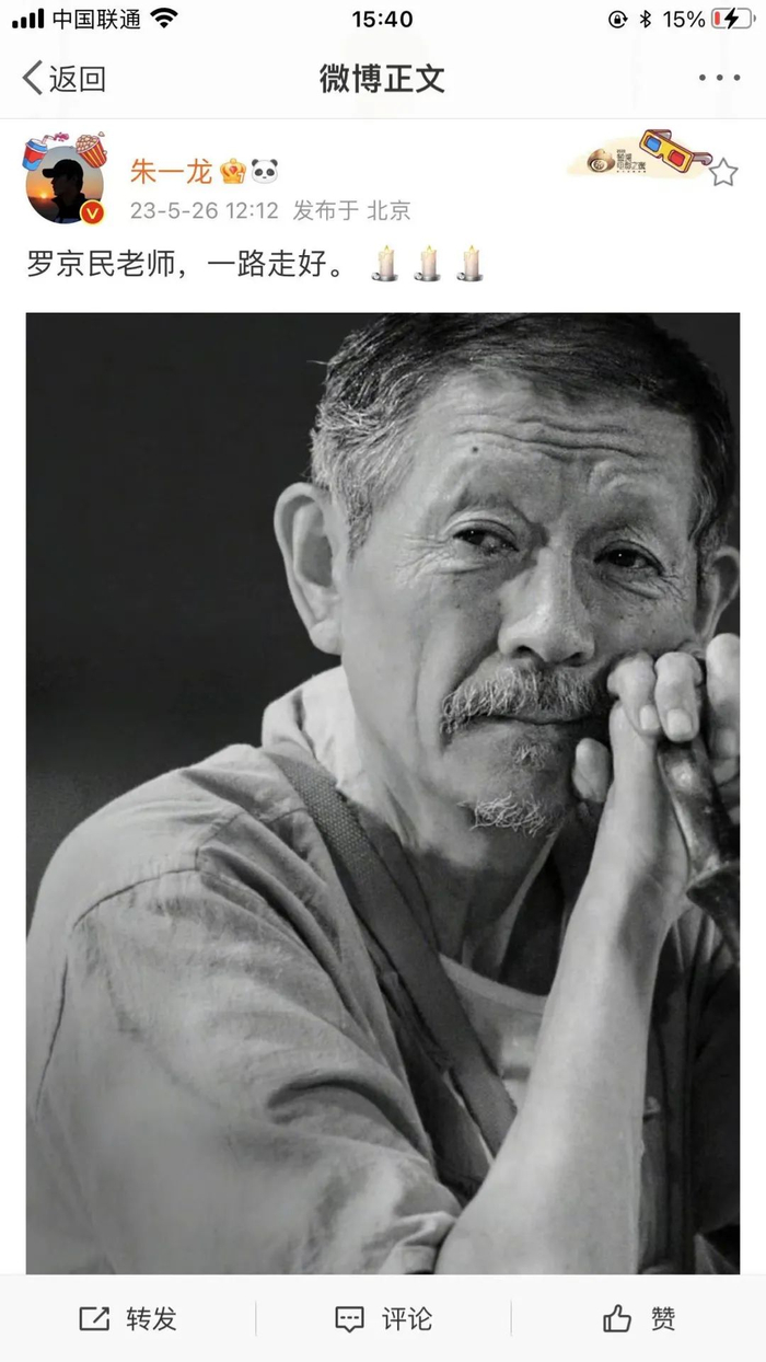 朱一龙发文悼念:“罗京民老师,一路走好。”
