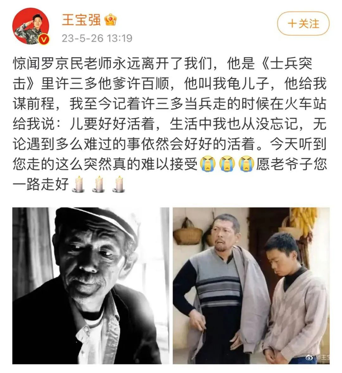 王宝强发文悼念:“听到您走得这么突然真的难以接受,愿老爷子您一路走好。”