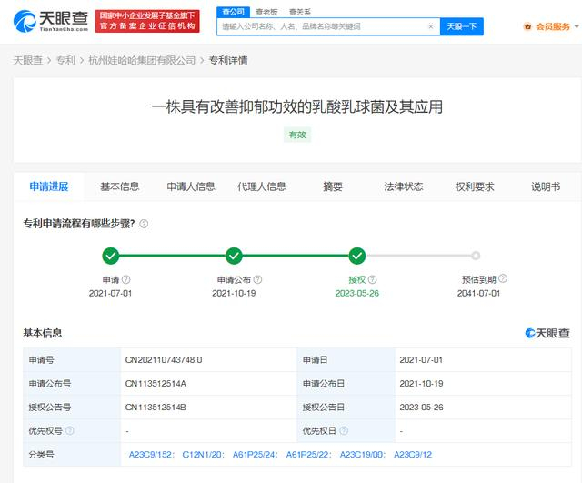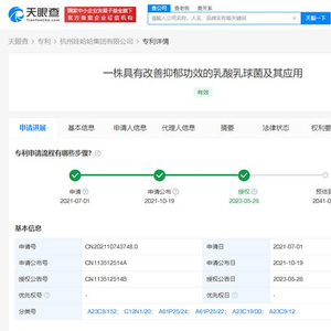中国经济周刊-经济网讯 天眼查App显示,近日,杭州娃哈哈科技有限公司、杭州娃哈哈集团有限公司申请的“一株具有改善抑郁功效的乳酸乳球菌及其应用”获专利授权。