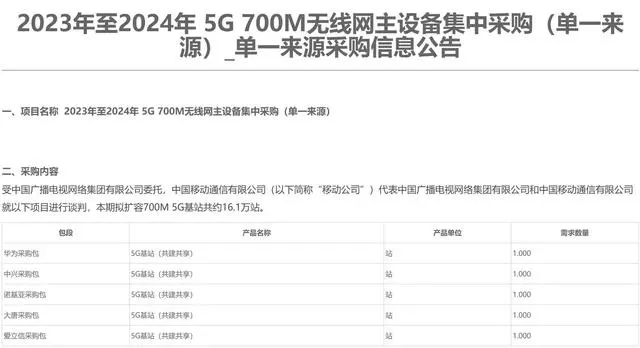 中国移动内部人士对记者介绍称,之所以通过单一渠道采购是因为之前中国移动和一些5G基站供应商达成过合作,现在这些基站需要升级或优化,通过单一渠道采购能够保证让供应商自己来进行升级。
