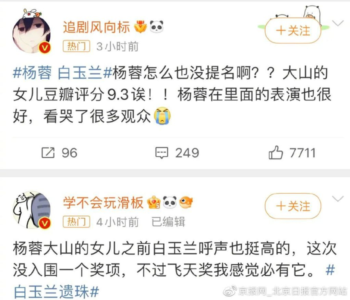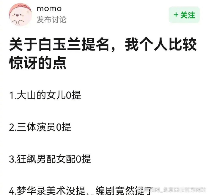 竞争激烈+评价标准模糊,#白玉兰遗珠# #白玉兰0提#紧跟着登上微博热搜。