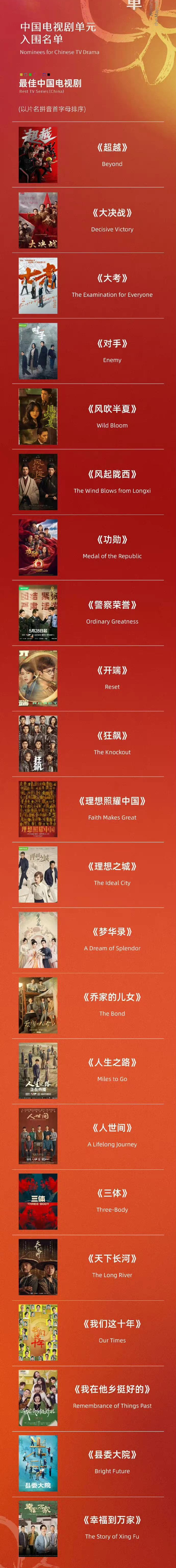 白玉兰奖去年因上海疫情延迟,以致今年的白玉兰奖集合了过往两年的优秀作品,竞争十分激烈。