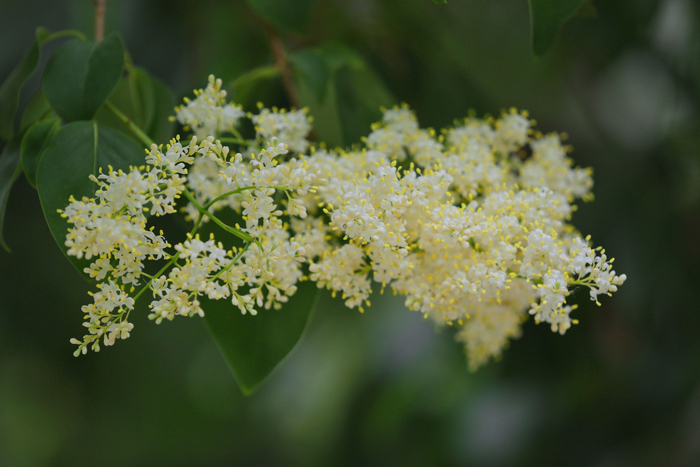 虽说有着“白丁香”的称谓,暴马丁香的花却不是洁白如纸,而是雪色中带一点暖黄的乳白色。