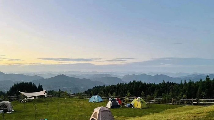 罗汉林星空露营基地:位于叙永县分水镇的罗汉林,因海拔1902米被誉为泸州之巅。高大的松树林旁,平坦草甸边的木栅栏……伴山而坐,视野辽阔,俨然一处远离城市喧嚣的秘境。夜幕降临的时候,看天空从霞光色陷入静谧,圆月缓缓地升起,繁星点缀夜空,仿佛踮踮脚就能触摸天空。