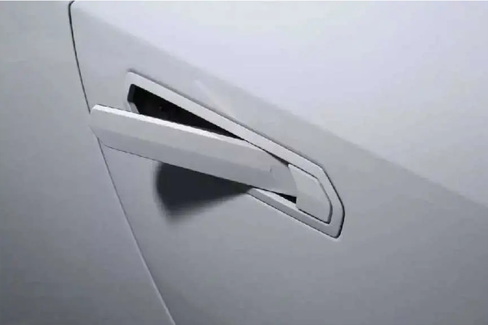 其实很多人都误解了,开不开得了,跟采用何种把手并无关系。伸缩式门把手依靠电力驱动完成弹出和收回动作,但它的作动机构依然是依靠机械拉索来连接门锁,换句话说,你只要能将把手从门里面抠出来,它就和传统把手没有两样了。关键是,怎么抠?其实车企早就预留了途径,因为你就算不出车祸,也可能遇到钥匙遥控失灵或者电瓶亏电的情况,需要手动打开。这个途径通常设置为,按压把手的前端,按下去之后,把手后端就翘起来了,变成可以拉动的状态,也露出了钥匙孔。