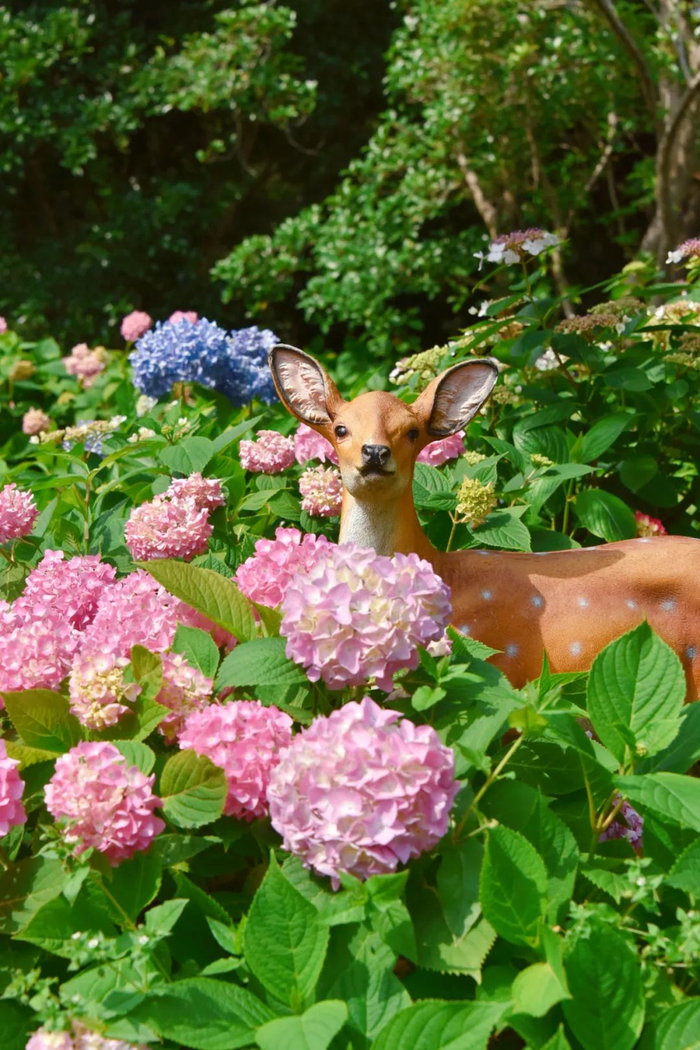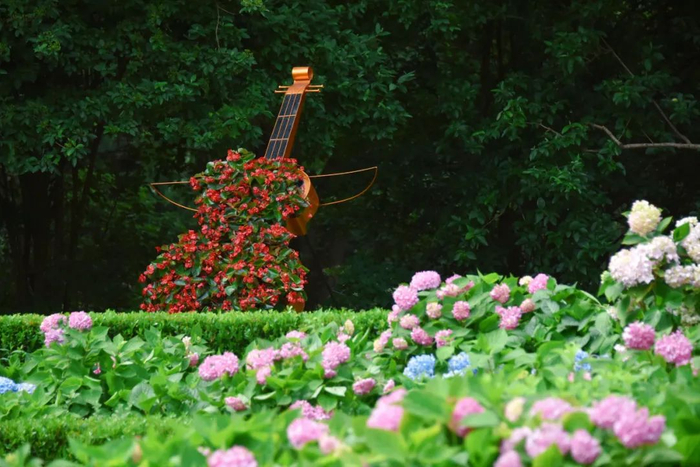 今年,园方在原有品种的基础上又引进了“流行乐”“和声”“拇指薄荷”“小壁画”“天幕坠落”等十余个八仙花新品种,使园内八仙花达到50余个品种、2万余株。满载绣球花的大提琴、吉他、小提琴等音乐容器和园艺小品散布在美丽的花园中,奏响生命的赞歌与“新生”的乐章。同时,花园中也布置了风车及铁艺插件,绣球与鹿、兔子等园艺小品“混搭”,特别具有童趣。
