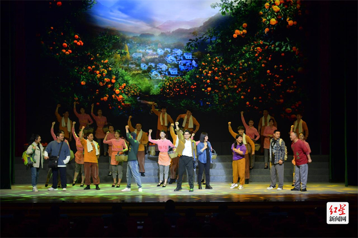 *铁牛村村民把原生态耙耙柑带到川剧《沃野炊烟》首演现场