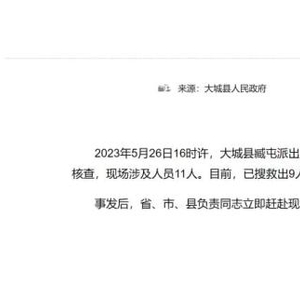 2023年5月26日16时许,大城县臧屯派出所民警在对涉嫌非法买卖的烟花爆竹进行取样鉴定时发生爆炸。经初步核查,现场涉及人员11人。目前,已搜救出9人,其中5人正在救治,4人已无生命体征;失联2人,正在全力搜救。