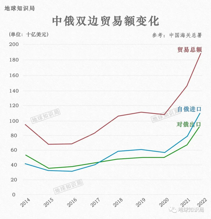 俄罗斯与中国之间的贸易不仅总量大