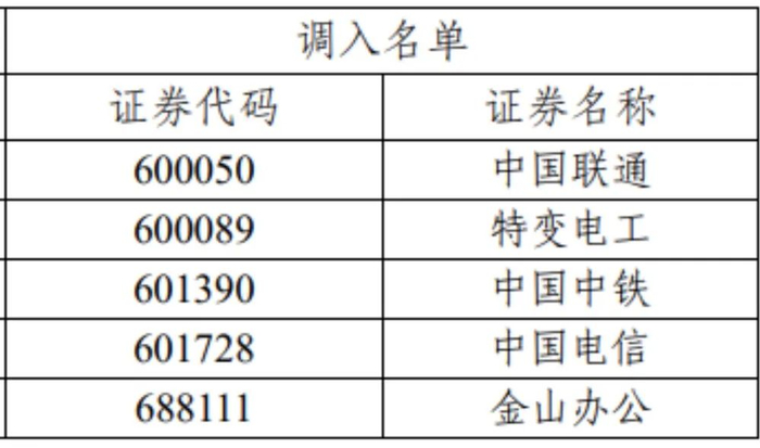 其中,上证50指数更换5只样本,新调入了中国电信、中国联通、特变电工、金山办公、中国中铁5家公司。