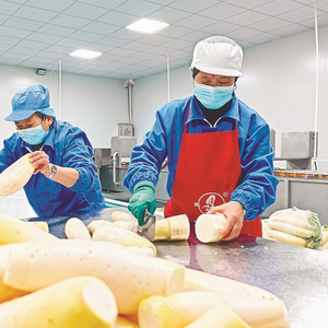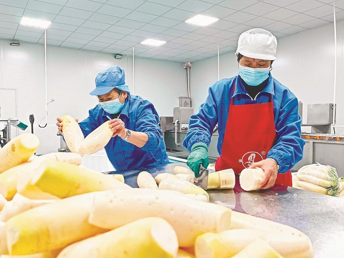 在浦城县农耕食品有限公司腌制车间内,浸泡坛中不时冒出汩汩的声响,脆嫩的萝卜在沉淀发酵中散发出诱人的酸味。一周后,这些泡萝卜便能端上消费者的餐桌。公司负责人范新龙说,公司主打泡萝卜和泡扁平包菜两款预制菜,今年预计产值600万元。公司还与当地合作社和农户进行合作,由公司统一提供种子、肥料和技术指导,收成后统一收购。