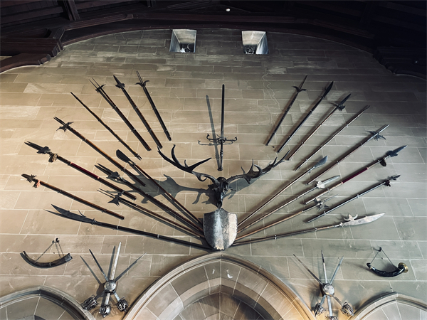 作为英国一级保护建筑,这座城堡凝聚了英国自盎格鲁-撒克逊时期以来的历史,不过意外的是,它并不归英格兰遗产委员会(English Heritage)或者国家名胜古迹信托(National Trust)这样的公共机构管辖,而是由默林娱乐公司(Merlin Entertainments PLC)运营——1978年,格雷维家族将城堡出售给了杜莎集团(The Tussauds Group,后来被默林娱乐收购)。从售票处走进去,首先会经过一个儿童游戏区域,可爱的卡通形象的龙张开双翅,邀请大家开始冒险,城墙内好几处帐篷纪念品商店出售着木质的剑和各种关于骑士文化的儿童服饰,大草坪上穿着铠甲的“骑士”带领孩子们释放过剩的精力;主体建筑内,中央大厅陈列了中世纪铠甲和从长剑到火枪的各种武器,楼上则布置为维多利亚时期风格的房间,大量丝绸、天鹅绒和雕花木料的装饰,甚至还有历史人物蜡像,一圈逛下来,繁复奢华令人炫目。无疑,现在这里并不是能让人怀古的地方,而是老少咸宜的旅游目的地。或许不是所有人都赞同将古迹变成某种历史主题公园,但花了四个小时把城堡几乎每个角落都游览一番之后,我发现这不失为一种近距离体验历史遗产的好方式,古建筑的保护和利用可以且应该是多样化的。