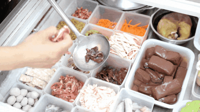 △粿汁配菜丰盛,想吃什么就加什么