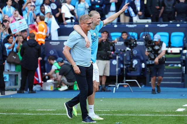 哈兰德父子庆祝曼城夺冠