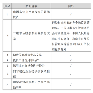 海南QFLP基金的投资范围采取“负面清单管理+例外”的管理模式,即针对不在清单内的业务均可开展投资活动,同时针对QFLP基金投资二级股票市场和进行企业债券交易预留了空间,经管理部门认可的方可开展投资。投资者在拟进行项目投资时,拟投资项目不得为以下七项业务: