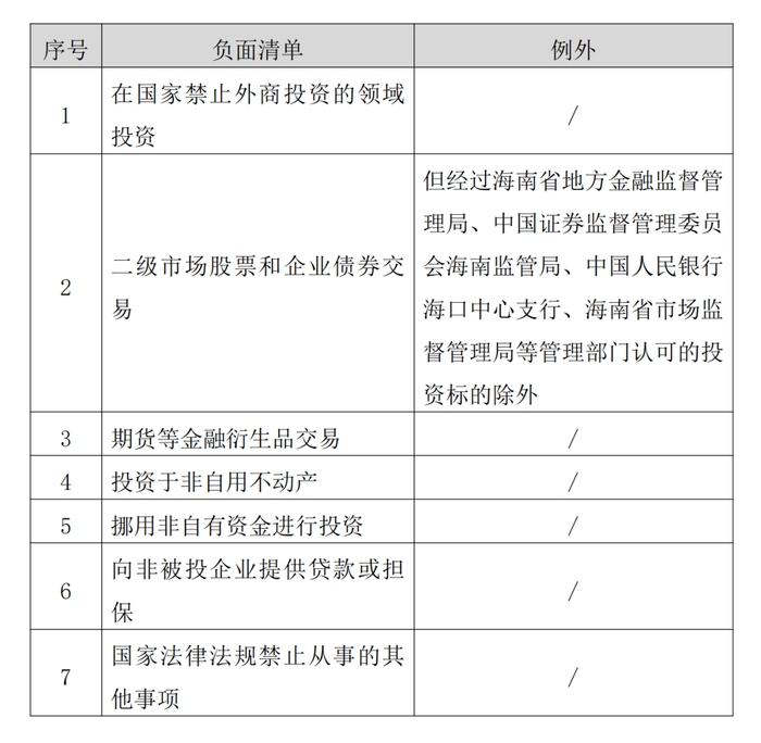 对海南QFLP基金经营范围采取负面清单管理模式,比起北京等仍适用正面清单的城市,极大拓宽了投资范围,同时还通过例外约定为海南QFLP基金投资二级市场股票和进行企业债券交易预留了空间。