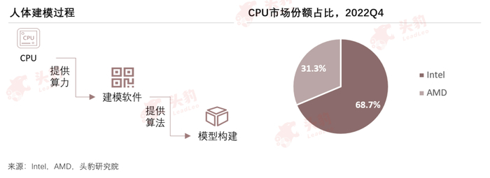 ● 人体3D扫描建模中,CPU主要运用于人体模型创建过程。当前CPU市场主要被Intel和AMD两家公司垄断
