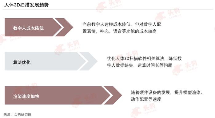 ● 人体3D扫描在数字人建模应用上将持续加快产品优化。降低数字人建设成本,优化数字人建模算法,提高数字人渲染速度