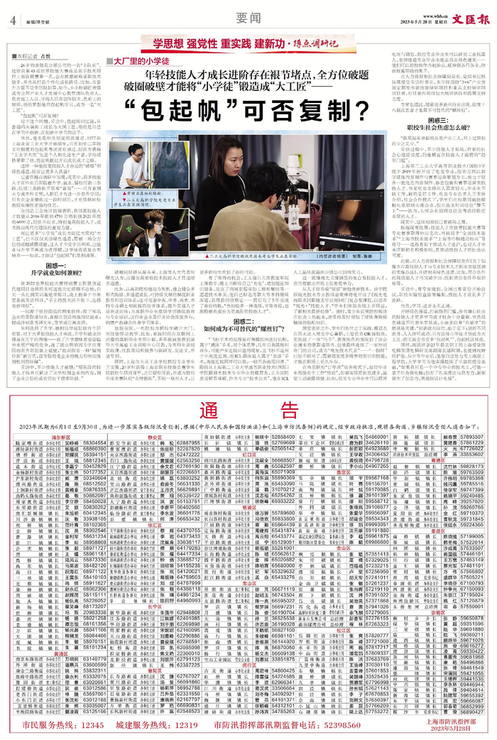 正致力打造一支与城市地位相适应的高质量职业技能人才队伍的上海,需要在多方面加速打通裉节,大胆创新破题。譬如,需要在管理体制机制方面加速改革,构建协调机制,让技能人才不受学历、社会心理接受度所困,进一步疏通成长成才通道;需要设立科学合理的技能人才评价标准,提高人才培养与产业需求的匹配度;需要构建多方协同机制,破解“校热企冷”窘境,让各方敢于为明天“埋单”,形成可持续的推动力……