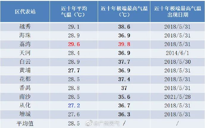 目前广州国家气象站近十年的极端高温纪录出现在2018年5月31日,为36.9℃。