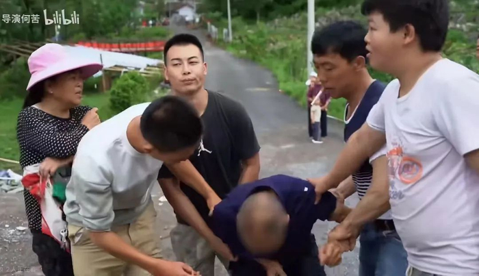 导演着急上火,阿文也急得哭鼻子,指着导演的鼻子说“你不尊重我,不拍了。”