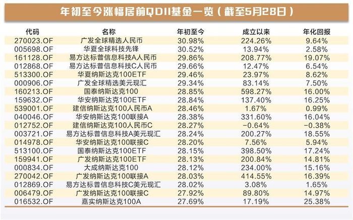 在美国股票市场上,嘉实基金旗下的嘉实美国成长股票基金QDII今年以来收益率已达15%,该基金成立以来的收益率已翻两倍。此外,国泰基金旗下的国泰纳斯达克100指数基金凭借美股市场的上涨,年内收益涨幅更是高达26%,进入了目前基金业绩排行榜的前50强,超越了许多重仓人工智能的A股基金产品。