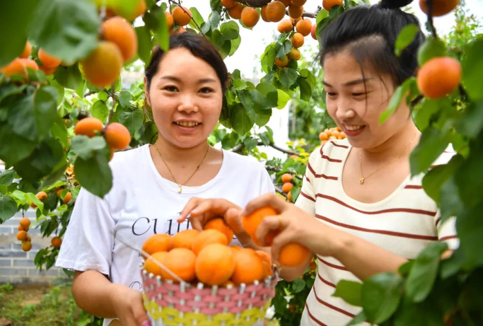 5月27日,在亳州市谯城区牛集镇圈椅村,游客在采摘成熟的杏子。当日,亳州市谯城区第九届“杏”福采摘节在牛集镇圈椅村举行,农家庭院的房前屋后杏子挂满枝头,一派好“丰”景,吸引了许多市民和游客前来体验“杏”福采摘的乐趣。(安徽商报融媒体记者 刘勤利)