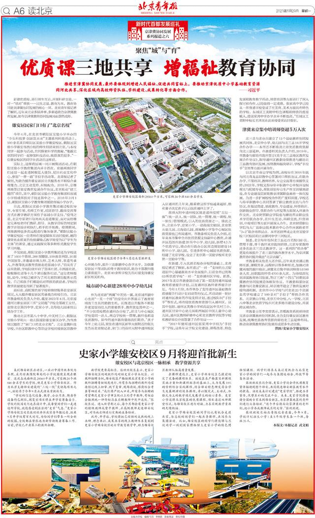 市教委主任李奕曾表示,首都教育系统将持续完善京津冀教育协同机制,全力支持雄安新区教育发展,统筹优质教育资源向廊坊北三县延伸布局,推动京津冀教育协同发展形成更多生动实践。