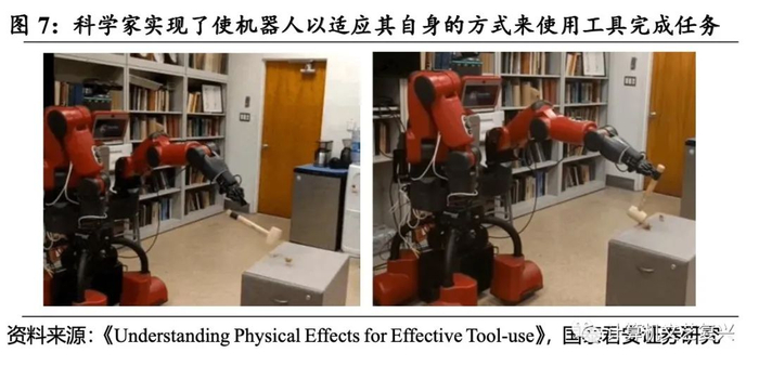 具身智能需要实现因果链。就以上提到的“铲土”例子,智能体能否顺利铲起土来是有因果关系的,例如控制挥动锤子的方式、动量、冲量等指标的改变程度和改变过程,需要用数学和物理的因果链来控制。人工智能研究院朱松纯教授团队介绍了一种学习和规划框架,并证明了所提出的学习和规划框架能够识别对任务成功有重要意义的基本物理量,使智能体能够自主规划有效的工具使用策略,模仿人类使用工具的基本特性。