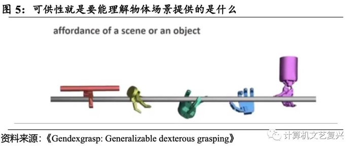 具身智能首先要具备可供性。可供性意味着要让机器知道物体和场景能够提供的是什么,比如整个身体、部件怎么和场景进行有效拟合。根据《Gendexgrasp: Generalizable dexterous grasping》论文中的案例,用两、三、五根手指去握一个柱子,倘若不同的手都能够产生无误的握杆效果,就代表有了可供性,而物理学正是机器理解可供性的关键。