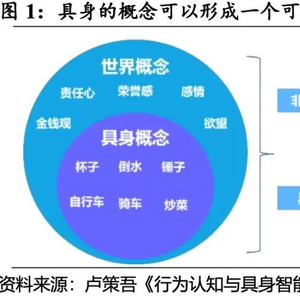 具身的概念是可检验、可测量的。人所理解的世界概念,其中既包括人类独有的责任心、荣誉、感情、欲望等非具身的概念,也包括了杯子、车等实体以及相应行为的具身概念。而具身概念是具备可达性、可检验性以及可解释性的,即具身的概念对应的实体和行为是可以被测量,可以通过任务的完成来验证以及通过具身学习来实现概念的推断。相比之下,非具身概念基本要素不能实现可测量及可检验。