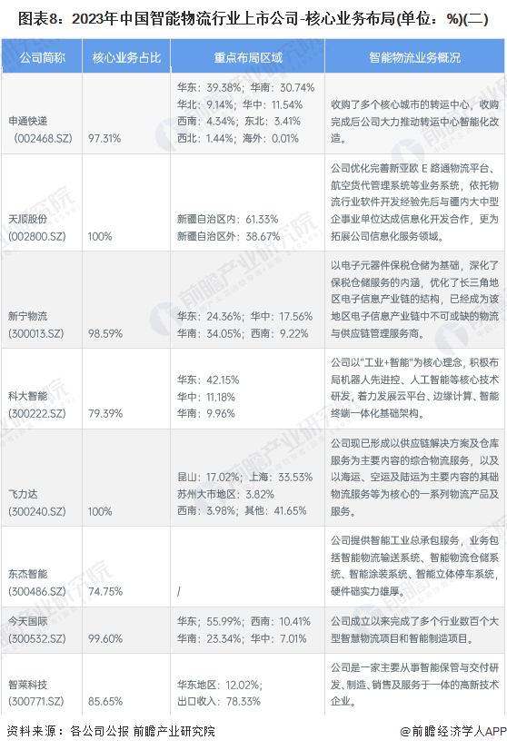 2、智慧物流行业上市公司业务布局对比
