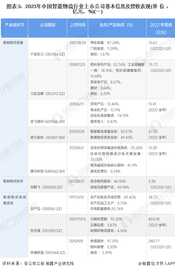 【最全】2023年智能物流产业上市公司全方位对比(附业务布局汇总、业绩对比、业务规划等)
