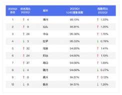 2023年第一季度,百城1小时通勤指数榜TOP10主要为二三线城市,其中TOP3城市是潮州、汕头、中山,通勤一小时可达性越高,通勤幸福感越强;5公里通勤指数TOP10城市中有8个城市位于广东省,其中佛山、东莞为新一线城市。